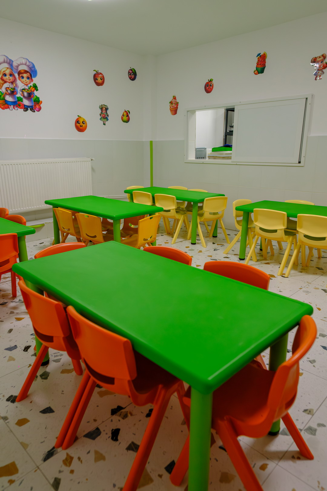 Este realizat de un nutriționist, cu aportul de calorii specific fiecărei categorii de vârstă, fără aditivi alimentari, conform normelor Direcției de Sănătate Publică. Meniul conține preparate din toate grupele principale de alimente.